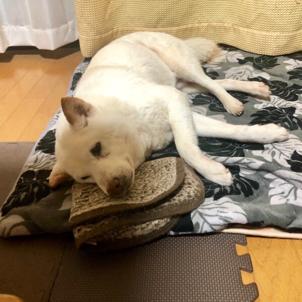 お家へ戻りますと、寝ておりました ヒバ子さん_:(´ཀ`」 ∠):