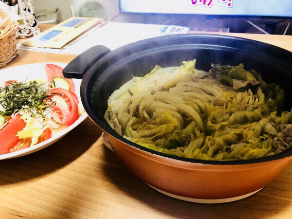 瞬ぴぃ達の 夜御飯は、寒かったので、豚バラと白菜のミルフィーユ鍋♪(*^^)o∀*∀o(^^*)♪