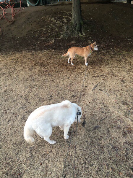 チラチラ おじーワンの様子と瞬ぴぃの様子を見ながら歩いております(笑)