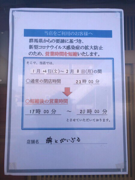 8時までの時短営業が延長されましたので、瞬ぴぃスタイルも続行です。