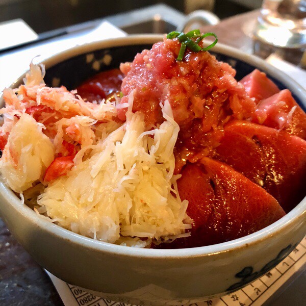 こちらは、昨晩の まぐろ盛りにプラスされておりました、ズワイガニ付きの ハーフ丼‼️