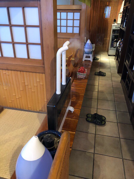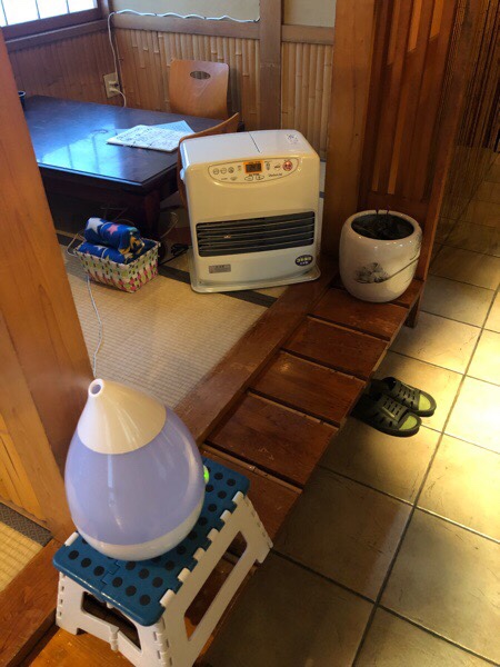 大きな加湿器やファンヒーターを移動させまして、セッティング。