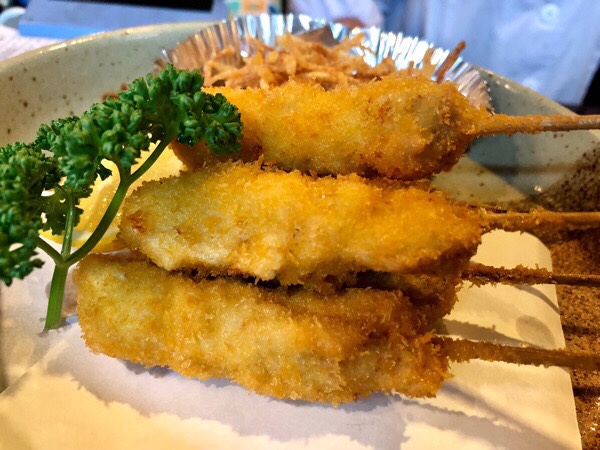 お通しは、こだわり豆腐の湯豆腐と 豚バラ串のチャーシュー。