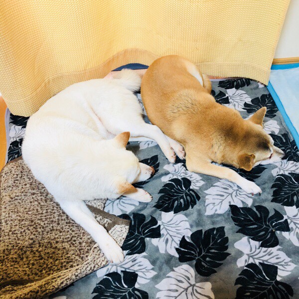 おじーワンが寝ますと、ヒバ子さんも 同じ体勢で 寝んねzzz… 。