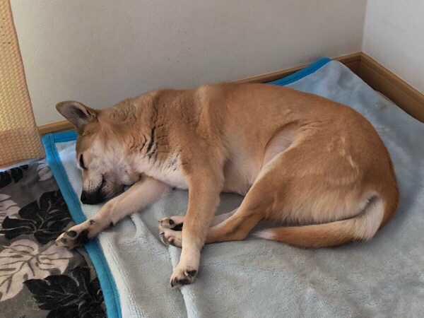 おじーワンも上手に お手手を枕にしまして、爆睡でございました。