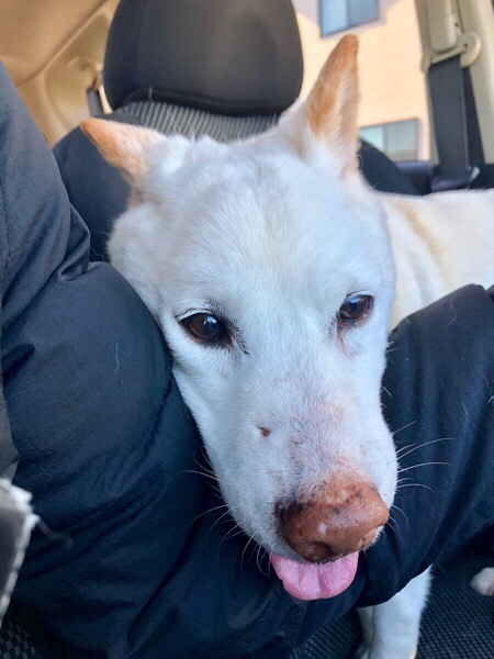 病院へ着きまして、お外に出れて 喜んでおりましたが。。。