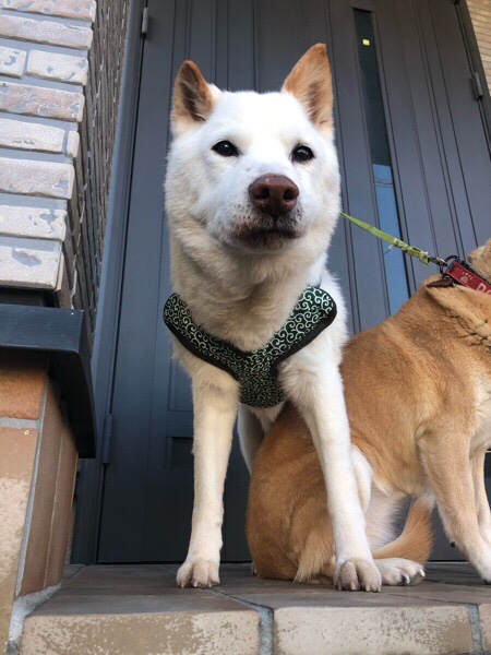 嫌がって 付けるのが 超大変でございましたが、今なら 大丈夫じゃないかな…と、体の負担を考えまして 首輪から ハーネスへと変わりました。