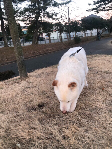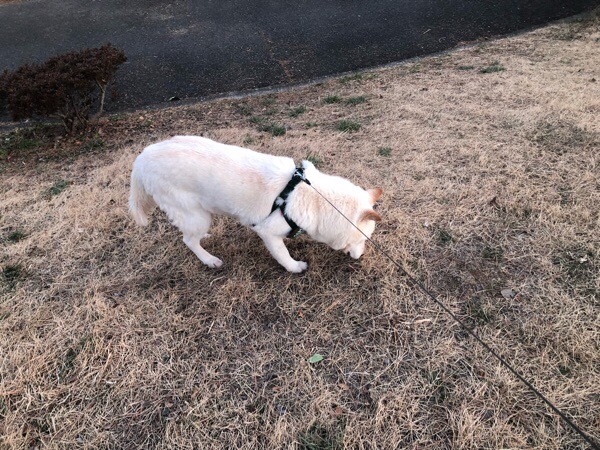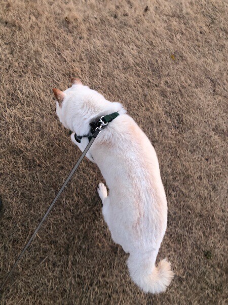 先日購入しました、ハーネスで お散歩となりました おじーワン( ^ω^ )