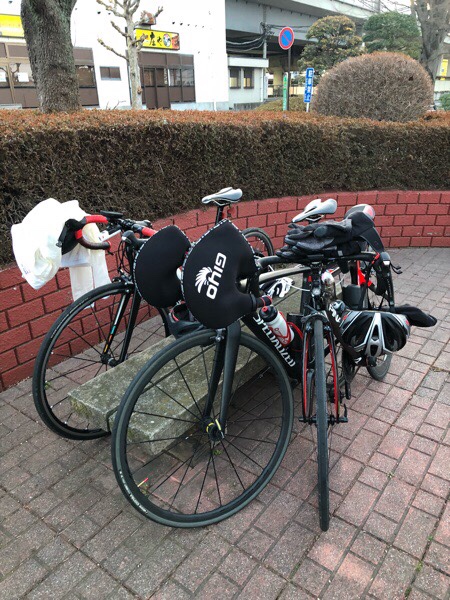 格好よりも 機能重視でございますので、ロードバイクでも ハンドルカバーを装着です(笑)