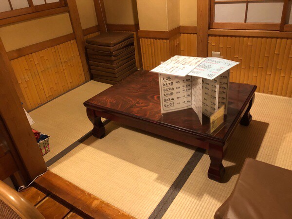 使用します席は、小上がり席3席のうち、真ん中席を使用せずに 両端の 2席を使用。