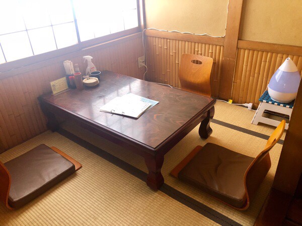 小上がり席の方は、一組貸切り営業で 使用しておりました お席を 今度は使わなくしまして、両サイドの お席を2つ使おうと思います。