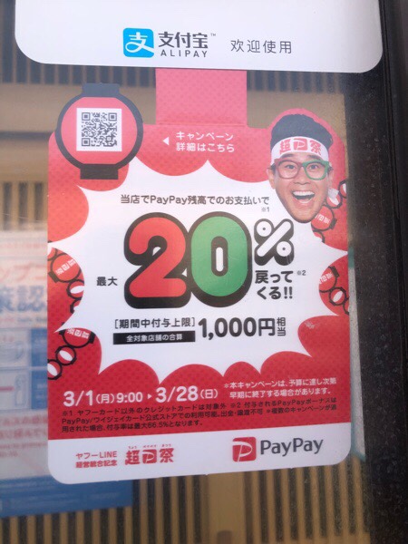 昨日からスタートしました、ペイペイのイベントですが、当店も 参加店となっておりますので、お支払いをペイペイ決済にしまして、お得をGETしちゃって下さいませー(^^)v