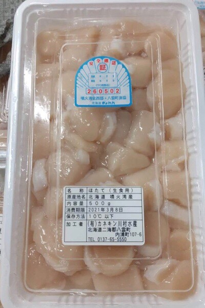 朝イチ、豊洲市場の仲買いさんより 御連絡頂きまして、ちょっと面白い物が ありますが…という事で、小さめなホタテを買い付けました(^^)