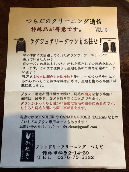 クリーニング店でございますので、ダウンジャケットなどの クリーニングは もちろん( ´∀`)