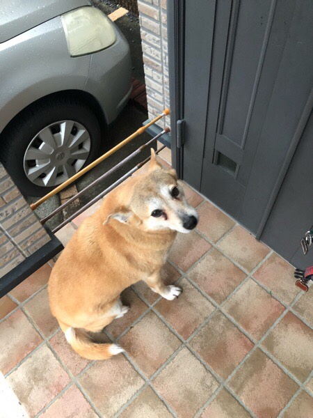 お散歩から帰って来まして、早く お家の中に入りたいアピールの ヒバ子さんでした( ^ω^ )