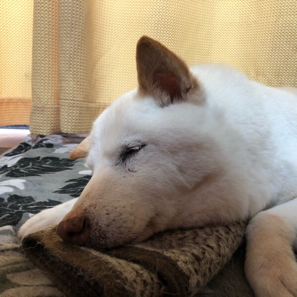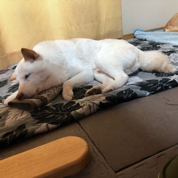 おじーワンが眠るのを見守ってから 寝る ヒバ子さんの優しさです∩^ω^∩