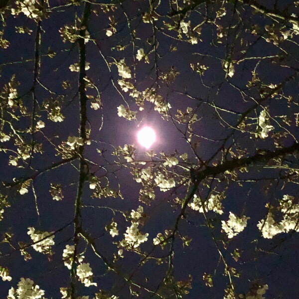 帰宅しまして、2人のシッコをさせながら、お月様と桜を🌸