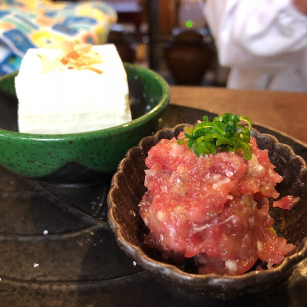 鮪の買い付けで、卸しさんからのご厚意で尾の身を頂きましたので、御予約の お客様に還元しようと ネギトロの塩ユッケ風を仕込みましてー!