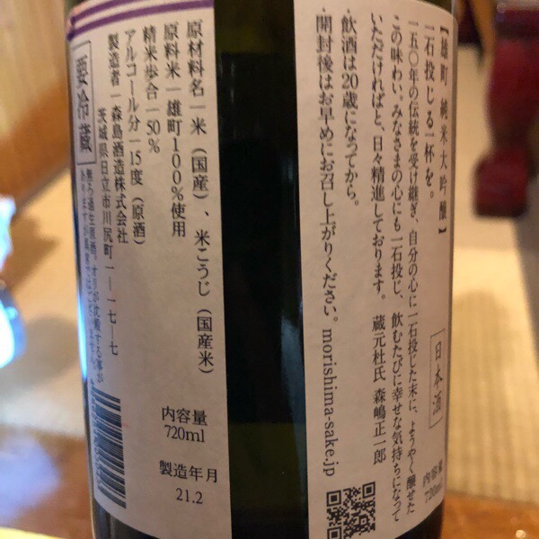 森嶋は、純米吟醸 ひたち錦から 純米大吟醸 雄町に変わります。