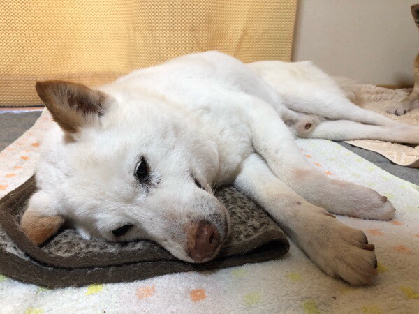 おじーワン、ペロンチョで寝んねでした(≧∀≦)