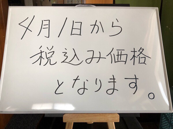 この後、メニューを税込表示に… 。