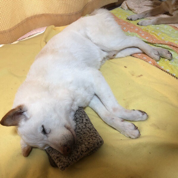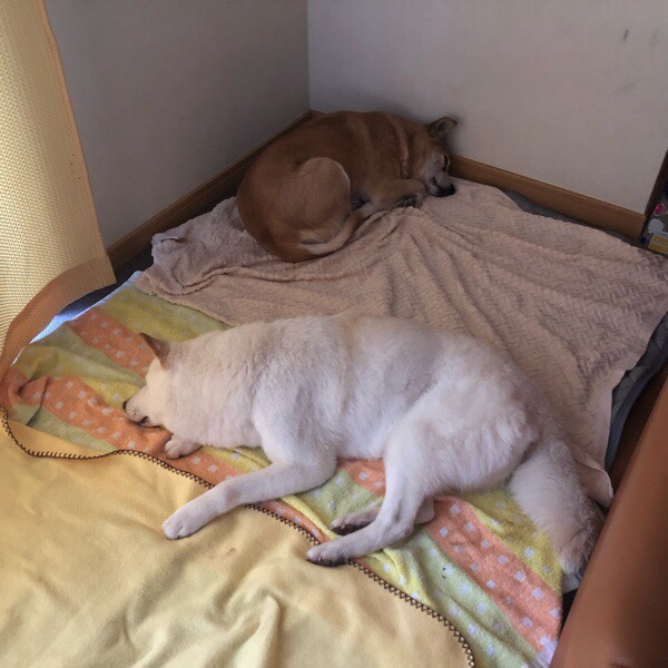 動き的には 着実に弱ってきておりますが、食欲は しっかりでございますので、一気に食べてから 朝の お昼寝zzz… 。