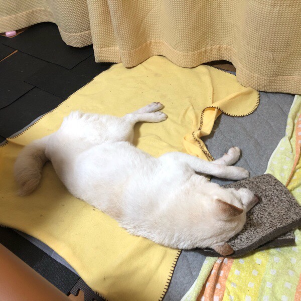 伸び〜をしたまま寝ちゃいまして、お休みデーは終了です。