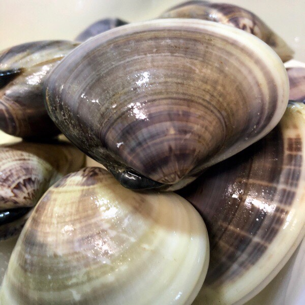 お通しは、出しちゃう作戦の 蛤の酒蒸しと 金目鯛の塩ユッケ。