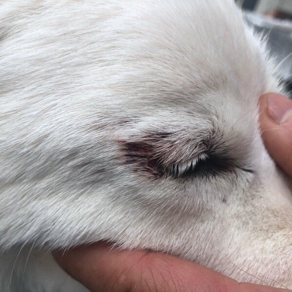日曜日の朝、起きてみますと…グッチおじーワンの目の上に傷が(>人<;)