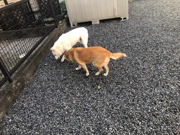 無事帰宅しまして、グッチおじーワンの シッコタイムでしたが、ヒバ子さんも飛び出しまして、一生懸命 グッチ君に ちょっかい出しておりましたo(^o^)o