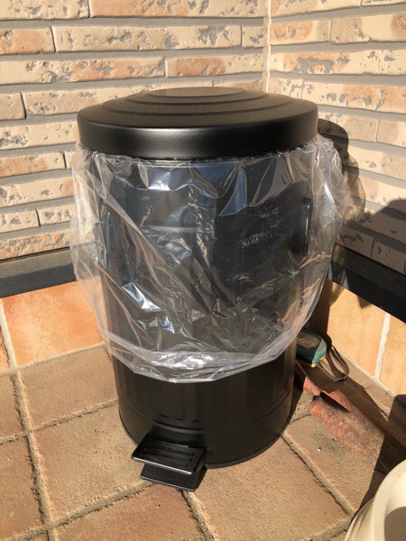 ウンティの袋だけじゃなく、グッチ君の オムツで、なかなかのボリュームになりますので、ゴミ箱設置!