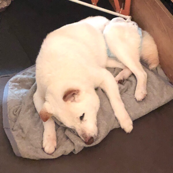 帰宅しますと、グッチ君が お布団小さくしまして、器用に寝ておりました(((o(*゚▽゚*)o)))