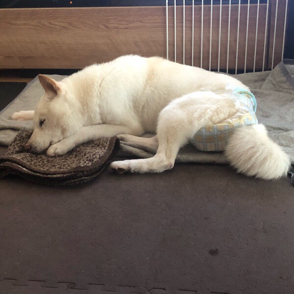 お仕事終えて 帰宅しますと、ペロンチョして、グッチ君が お迎えしてくれました(*≧∀≦*)
