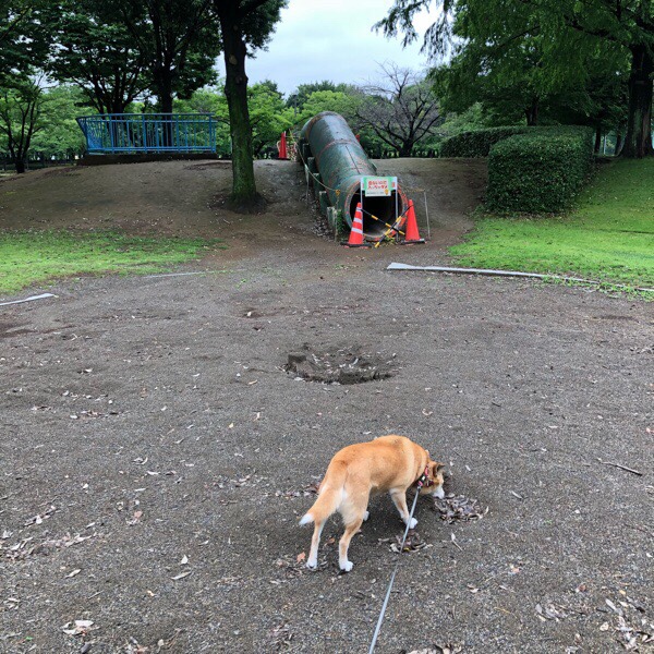 いつもの公園の いつもの砂場をクンクンと(^O^)