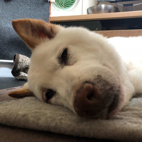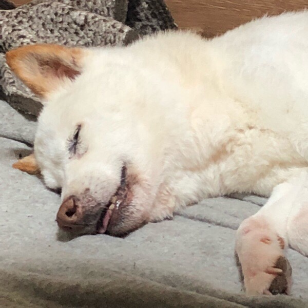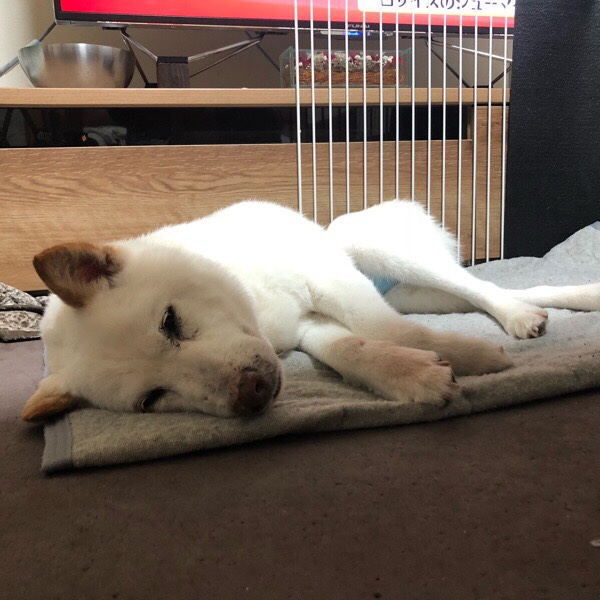 業務終了後、帰宅しますと お口を開いて 爆睡の グッチ君でございました😜