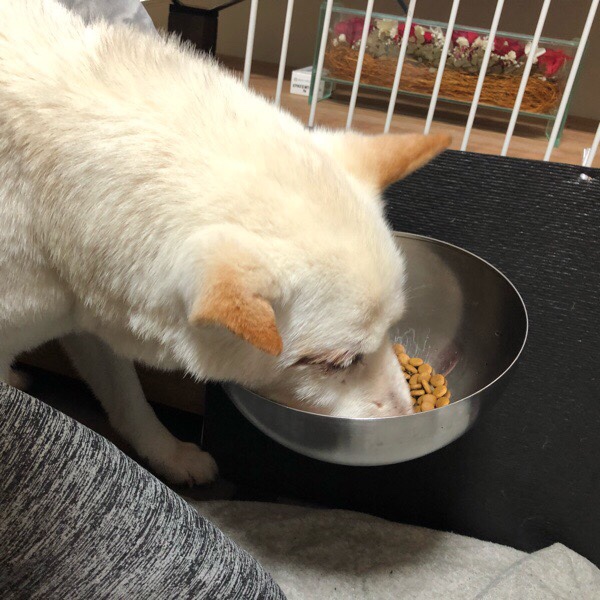それでも 御飯が来ますと、勢い良く 立ち上がりまして、パクパクと(*´∀`)♪