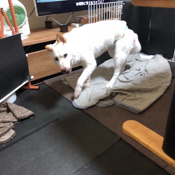 雨降りの日が続きまして、お部屋をお散歩のグッチおじーワン🐶