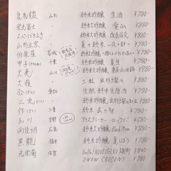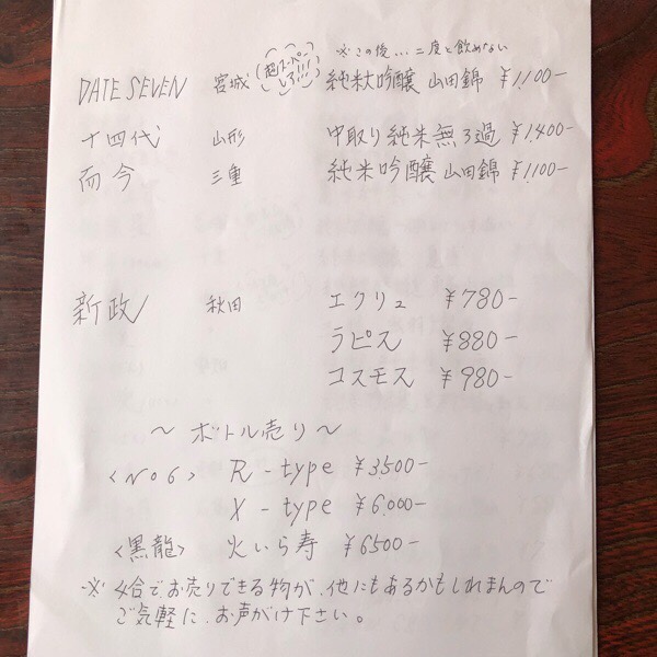 というわけで、日本酒メニューを書き直し_φ( ̄ー ̄ )