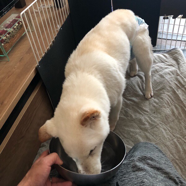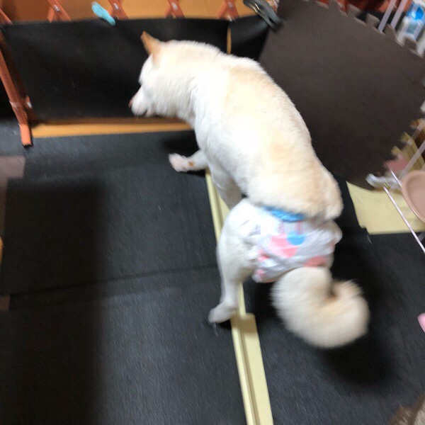 毎日雨降りで、お部屋の中で お散歩の グッチおじーワン🐶