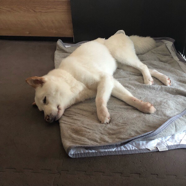 グッチ君は じぇんじぇん平気でして、御飯食べて またまた夢の中😴