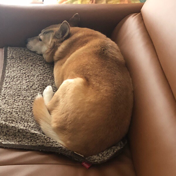 グッチ君、一足先に 御飯を食べまして、朝の お昼寝タイムに💤