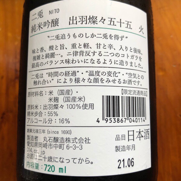 愛知県 二兎 純米吟醸 出羽燦々 五十五