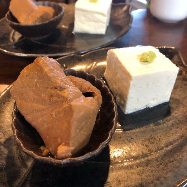 鮪の角煮と こだわり豆腐のヤッコが お通し。