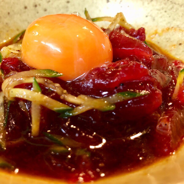 夕方4時に お店に戻りまして、お通し用の ホタテの塩ユッケを仕込んでおりましたら、T男からライン電話来まして、とー社長と2人なんたけど、席空いてる⁈ の確認(^^)v
