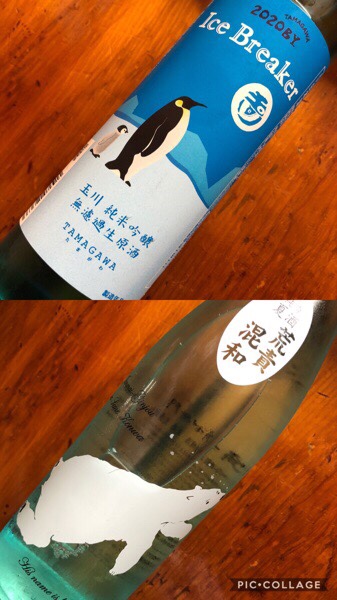 本日の 日本酒サービスは、暑い日に対抗しまして 涼しそうなラベルデー🍶
