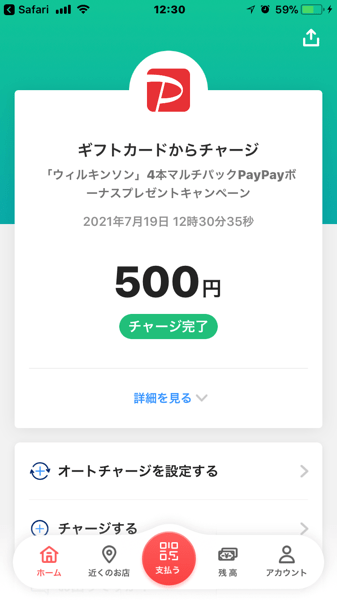 500ペイペイGETで、ラッキー🤗