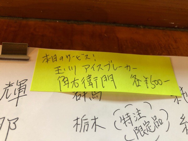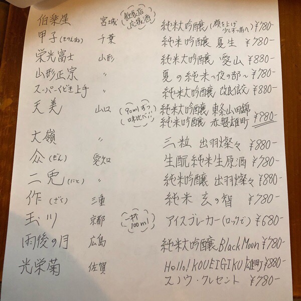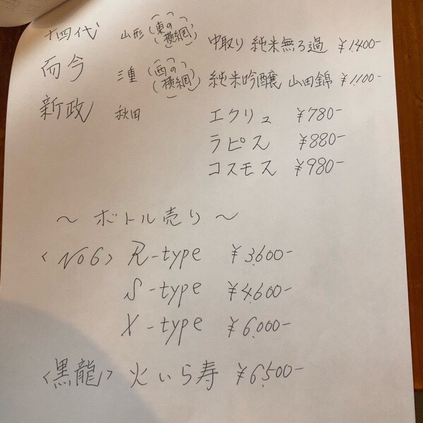 新たに仲間入りした物がありましたので、日本酒メニューを書き直しまして_φ( ̄ー ̄ )
