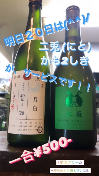 本日の日本酒サービスは、20日という事で、こちらの二本となります🍶