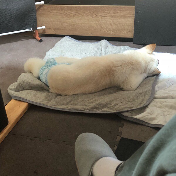 グッチ、足元へ やってきまして、寝んねというか、休憩☺️