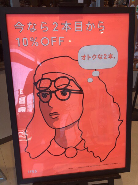 奥様、ブルーライトカットの眼鏡が欲しいという事で、JINSさん。